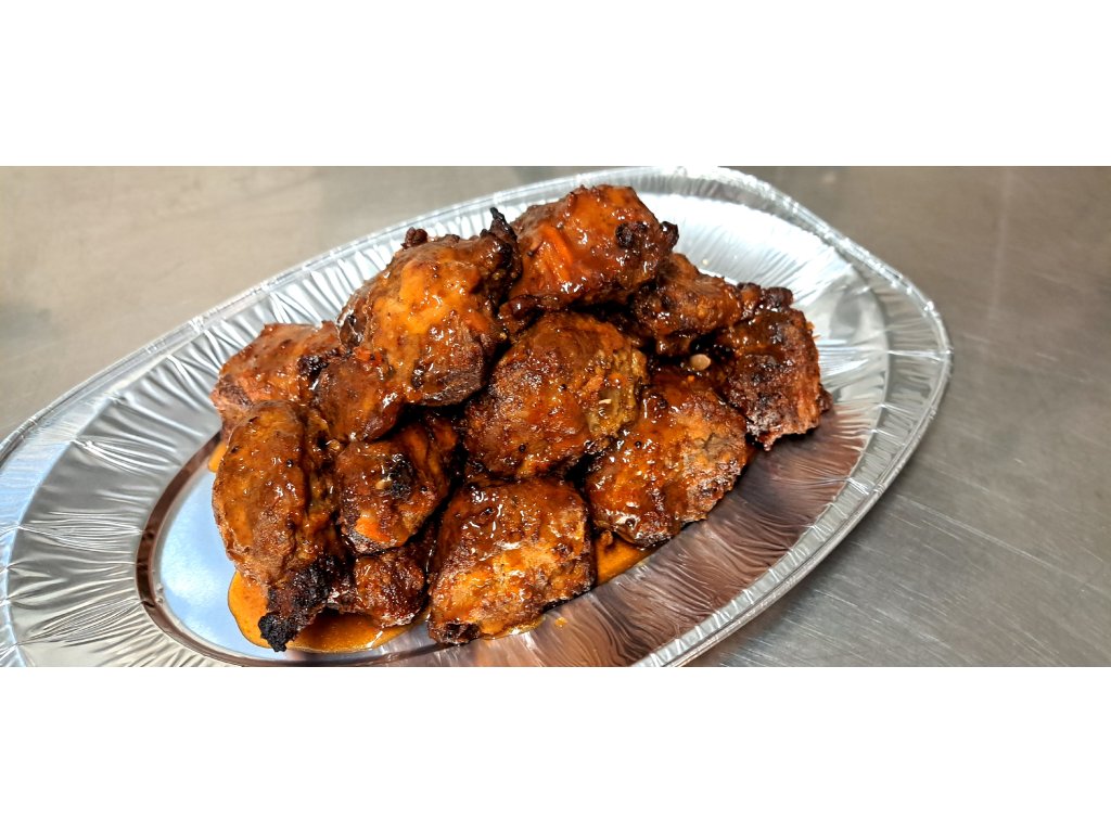 Delikátní vepřové líčka pečené ve víně s kořenovou zeleninou a bylinkami podávané s pepřovou omáčkou.